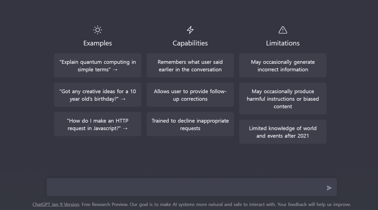 chatGTP는 프롬프트라는 대화형 문장으로 사람과 소통하며, 사람의 질문과 요청에 반응한다. 특히, 코딩영역에선 탁월함을 보인다.
