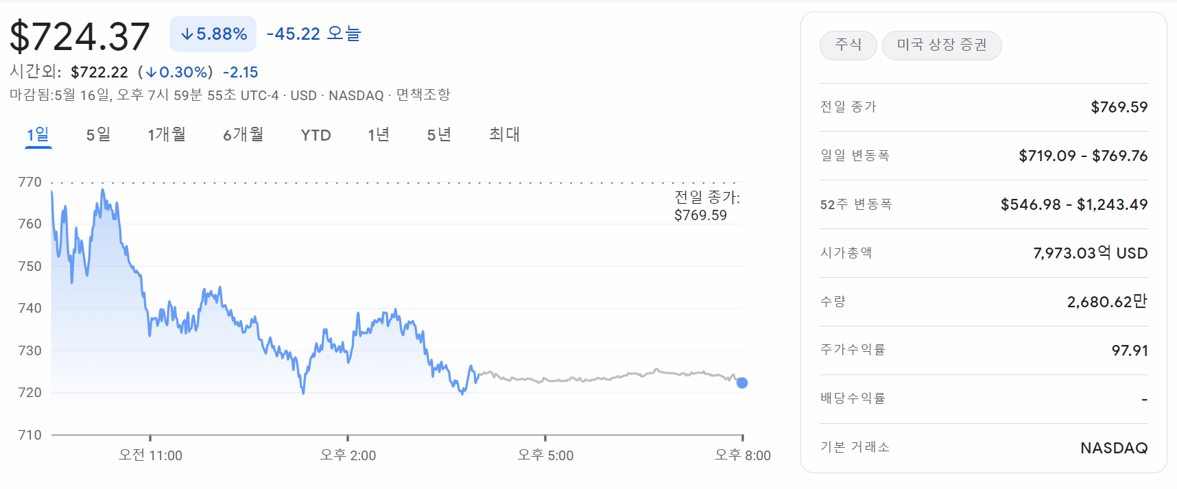 테슬라 주식 왜 하락하나 ? ㅠㅠ