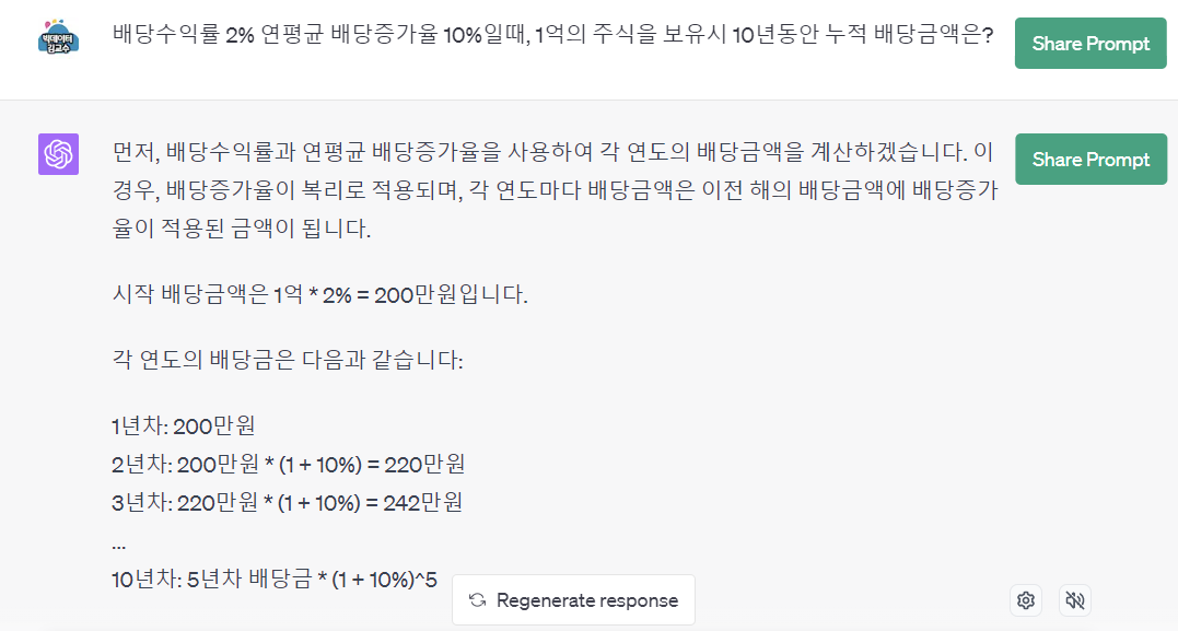 위 내용이 좀 의심스러워 챗지피티에게 다시 계산을 요구했습니다.