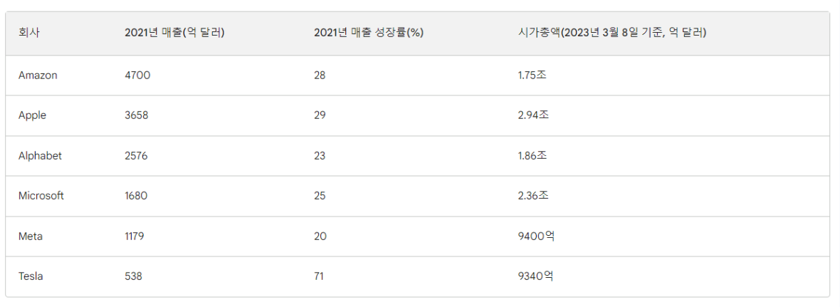 - Amazon: Amazon은 2021년 수익이 4700억 달러로 전년 대비 28% 증가했습니다.