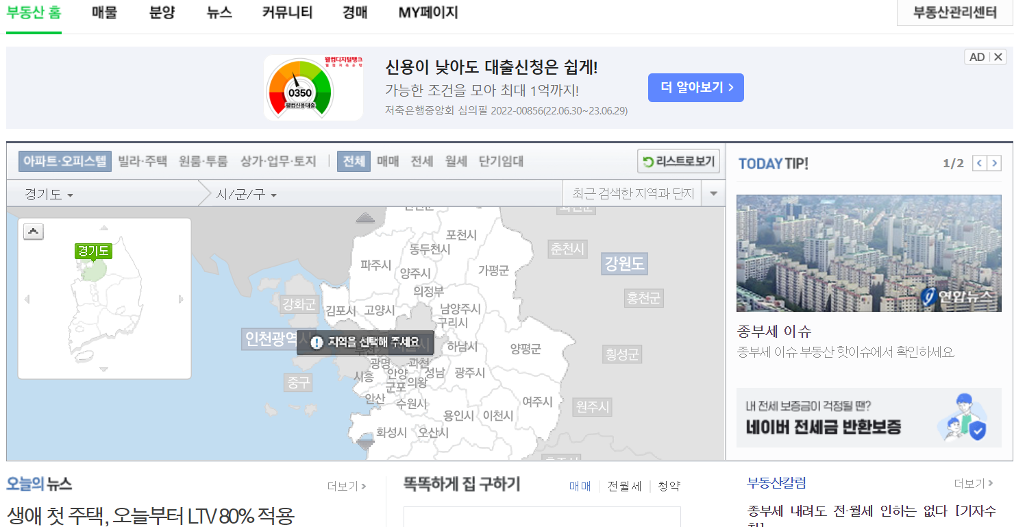 1. 네이버 부동산 정보