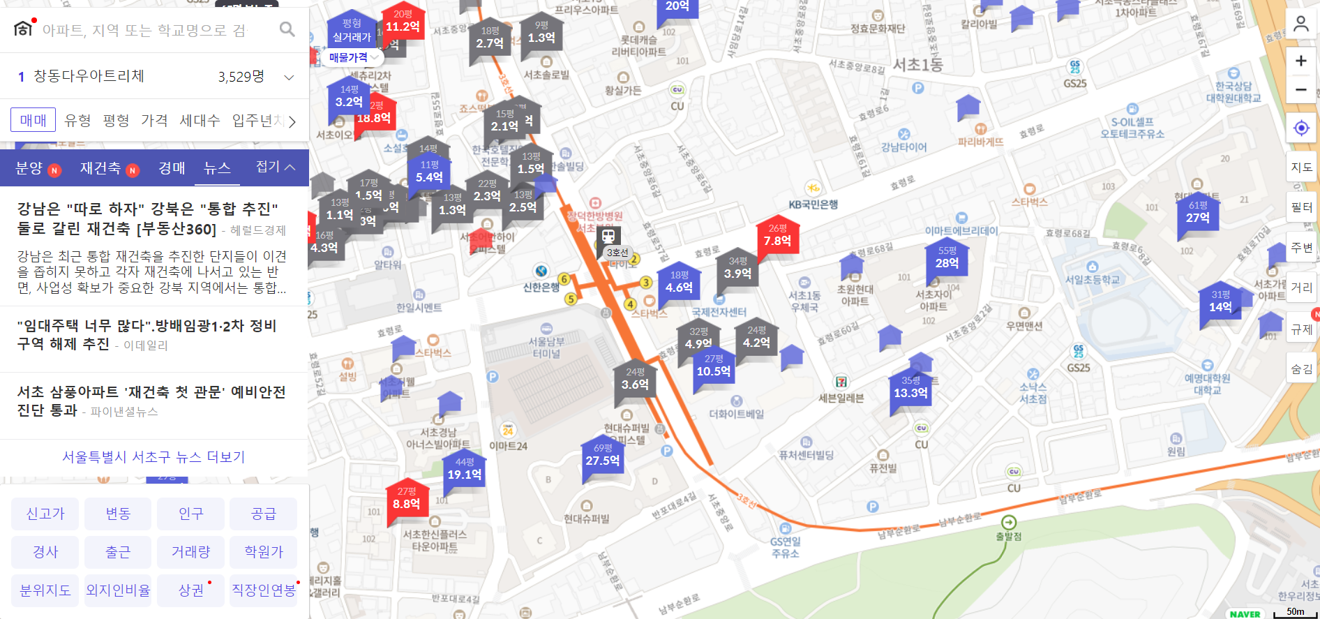 호객노노와 직방을 비교하면서 유형별 부동산 추이를 보는 재미를 제공하고 있다.