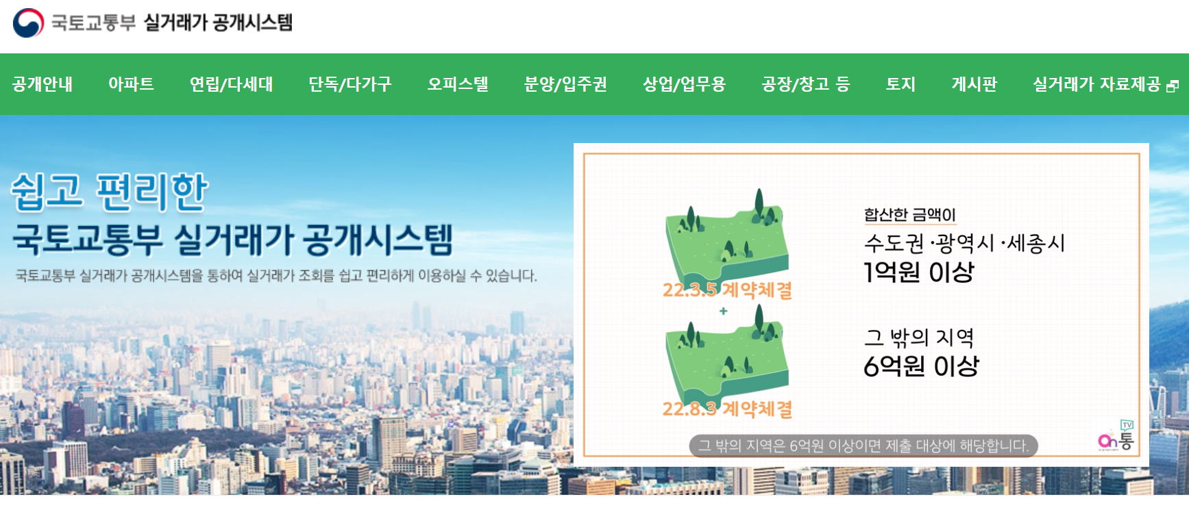 국토교통부에서 제공하는 실거래가 공개시스템은 관공소의 홈페이지 형태로 정형적인 디자인으로 구성되어 있으며, 오른쪽 실거래가 정보를 통해 공시된 파일로 다운로드할 수 있도록 서비스를 제공하고 있습니다.